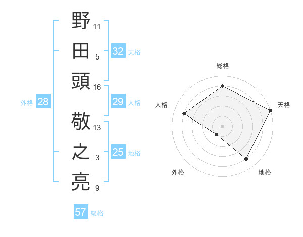 野田頭 敬之亮さんを姓名の画数から五運を鑑定