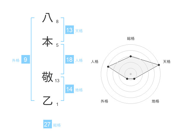 八本 敬乙さんの天格は13画の5点!