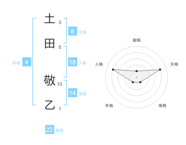 土田 敬乙さんを姓名の画数から五運を鑑定