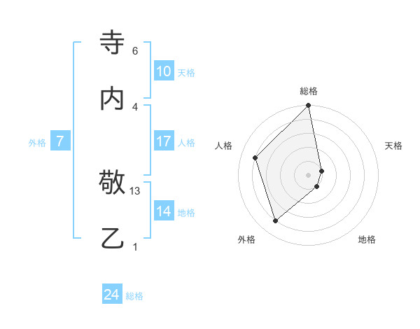 寺内 敬乙さんの総格は24画の5点!
