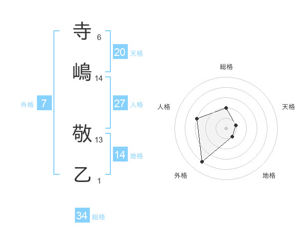 寺嶋 敬乙さんを姓名の画数から五運を鑑定