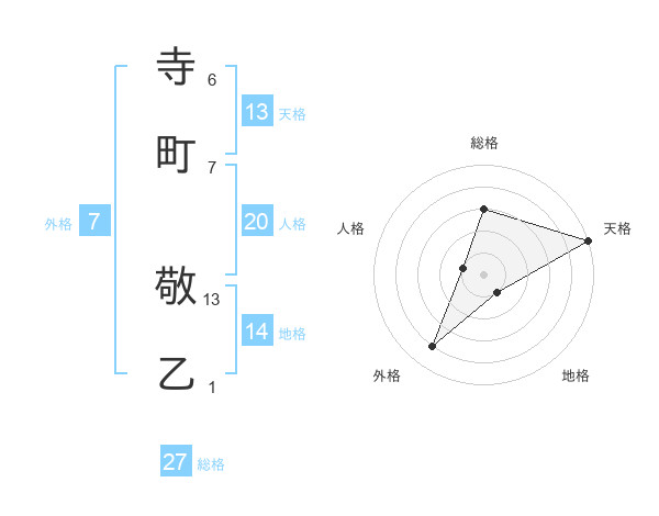 寺町 敬乙さんの天格は13画の5点!