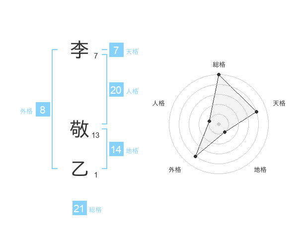 李 敬乙さんの総格は21画の5点!