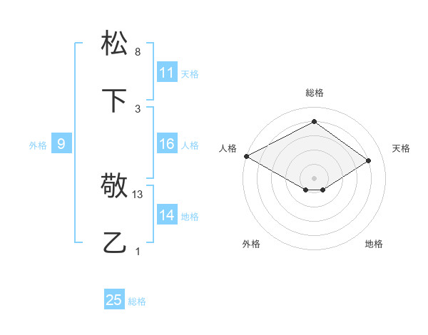 松下 敬乙さんの総格は25画の4点!