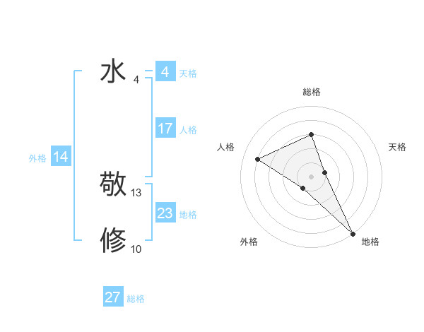 水 敬修さんの総格は27画の3点!