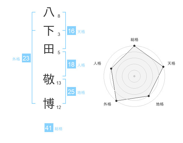 八下田 敬博さんの総格は41画の5点!