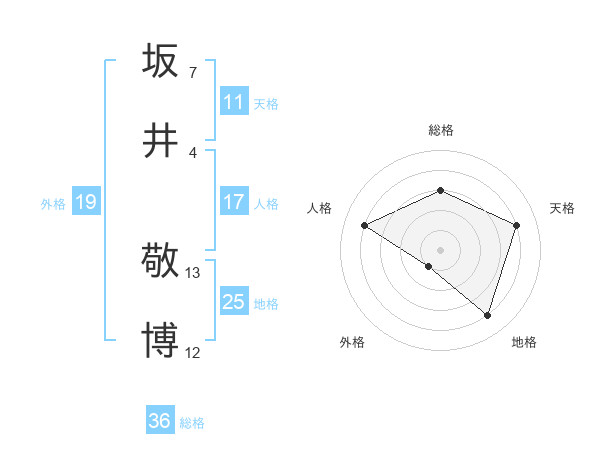 坂井 敬博さんを姓名の画数から五運を鑑定