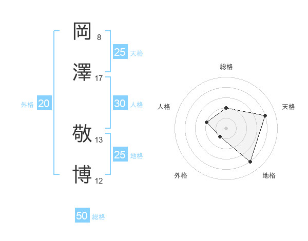 岡澤 敬博さんを姓名の画数から五運を鑑定