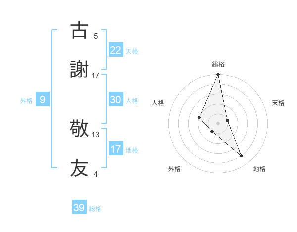 古謝 敬友さんの総格は39画の5点!