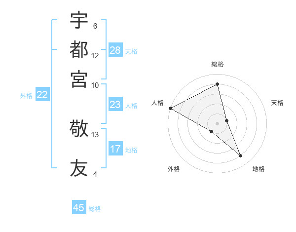 宇都宮 敬友さんを姓名の画数から五運を鑑定