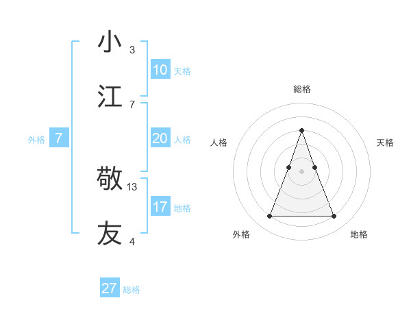 小江 敬友さんの総格は27画の3点!