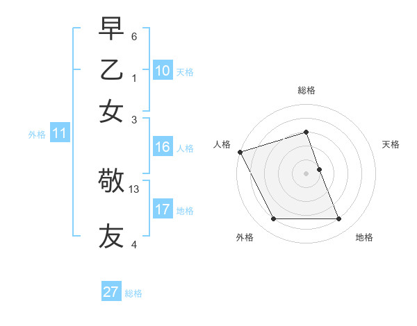 早乙女 敬友さんを姓名の画数から五運を鑑定
