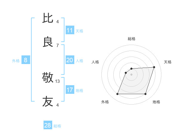 比良 敬友さんの天格は11画の4点!