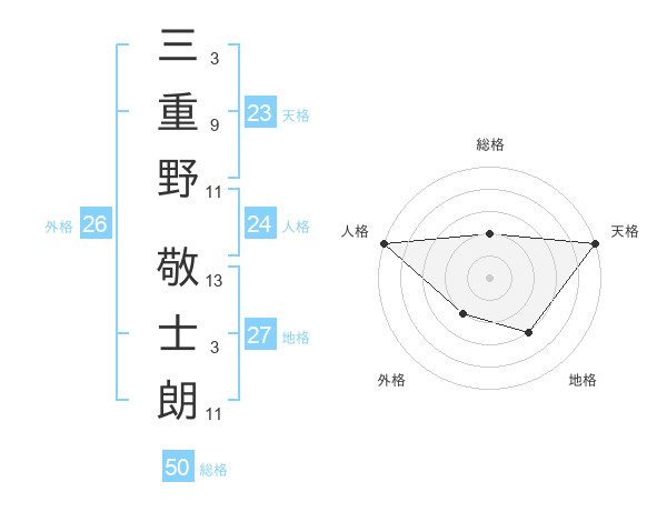 三重野 敬士朗さんを姓名の画数から五運を鑑定