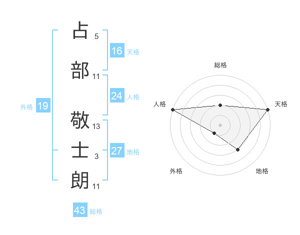 占部 敬士朗さんの天格は16画の5点!