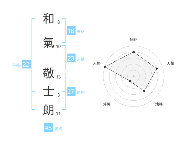 和氣 敬士朗さんを姓名の画数から五運を鑑定