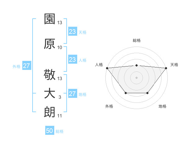 園原 敬大朗さんの人格は23画の5点!