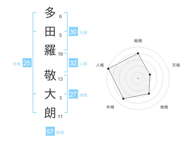 多田羅 敬大朗さんの総格は57画の4点!