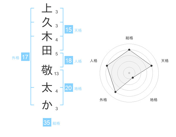上久木田 敬太かさんを姓名の画数から五運を鑑定