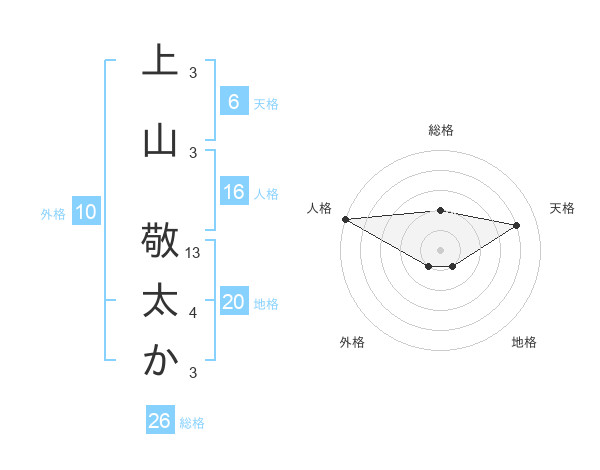 上山 敬太かさんを姓名の画数から五運を鑑定