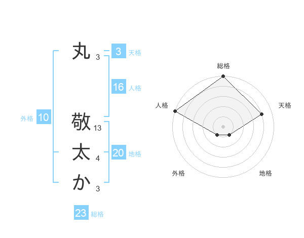 丸 敬太かさんの総格は23画の5点