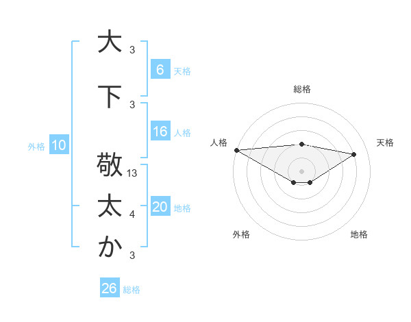 大下 敬太かさんを姓名の画数から五運を鑑定