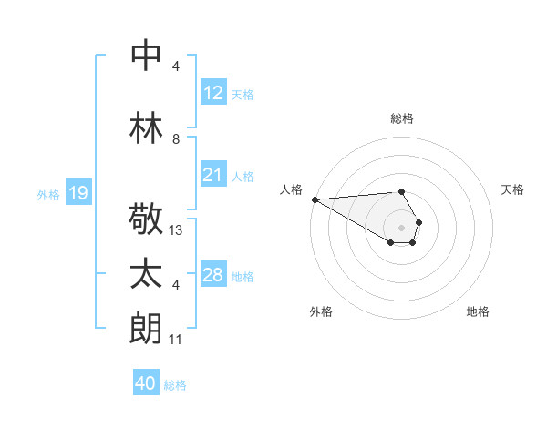 中林 敬太朗さんを姓名の画数から五運を鑑定