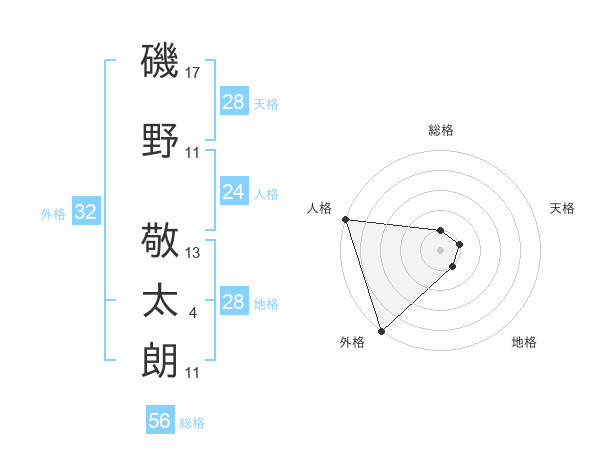 磯野 敬太朗さんを姓名の画数から五運を鑑定