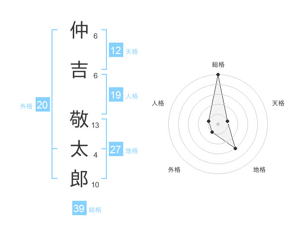 仲吉 敬太郎さんの総格は39画の5点!