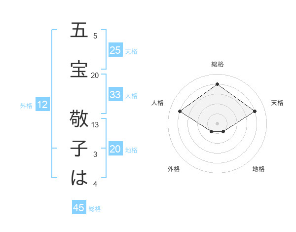 五宝 敬子はさんの総格は45画の4点!