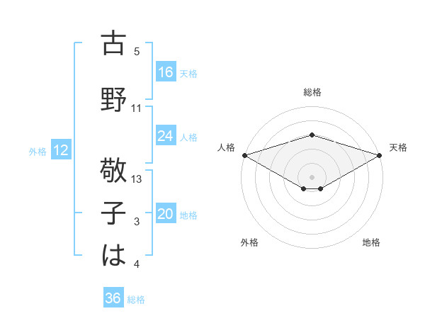 古野 敬子はさんの天格は16画の5点!