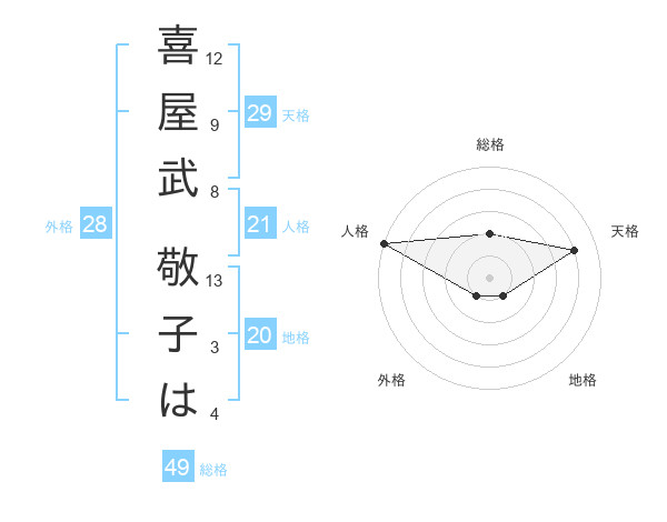喜屋武 敬子はさんを姓名の画数から五運を鑑定
