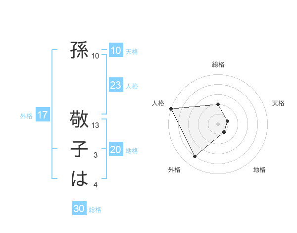 孫 敬子はさんを姓名の画数から五運を鑑定