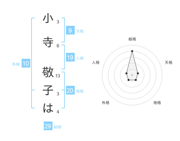 小寺 敬子はさんを姓名の画数から五運を鑑定