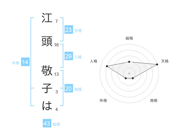 江頭 敬子はさんを姓名の画数から五運を鑑定