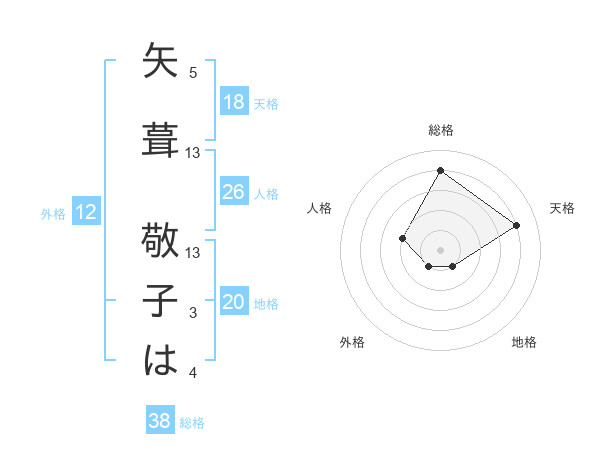 矢葺 敬子はさんの総格は38画の4点!