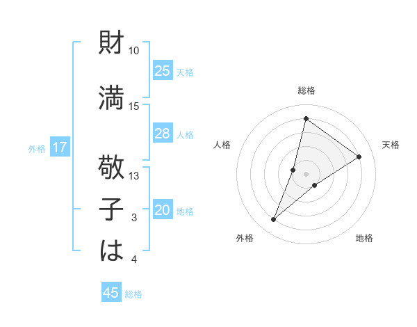 財満 敬子はさんを姓名の画数から五運を鑑定