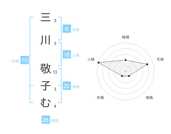 三川 敬子むさんの人格は16画の5点!