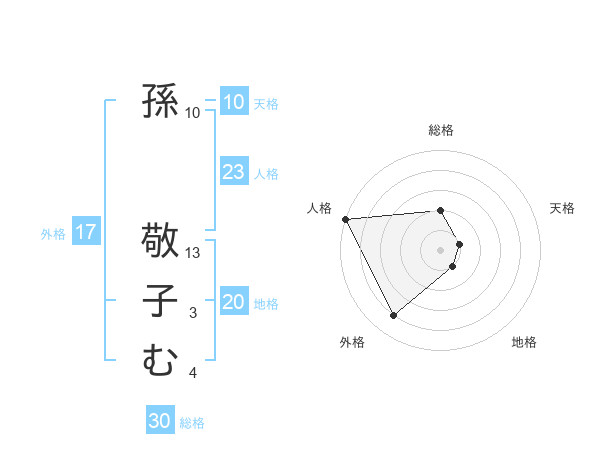 孫 敬子むさんを姓名の画数から五運を鑑定