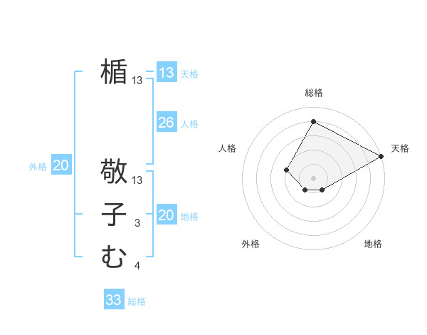 楯 敬子むさんを姓名の画数から五運を鑑定