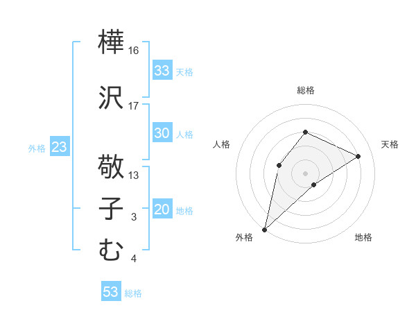 樺沢 敬子むさんの外格は23画の5点!