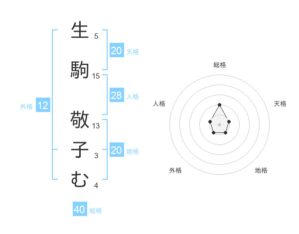 生駒 敬子むさんの天格は20画の1点!
