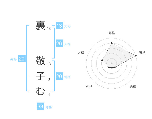 裏 敬子むさんの天格は13画の5点!