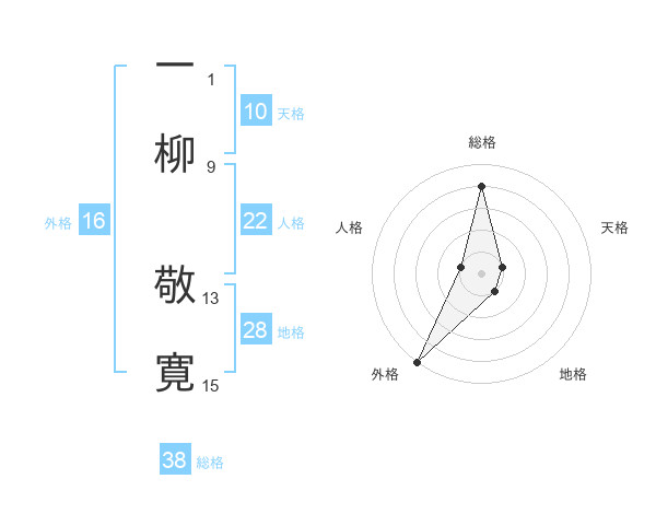 一柳 敬寛さんの総格は38画の4点!