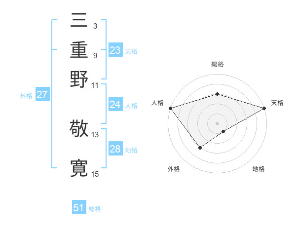 三重野 敬寛さんの総格は51画の3点!