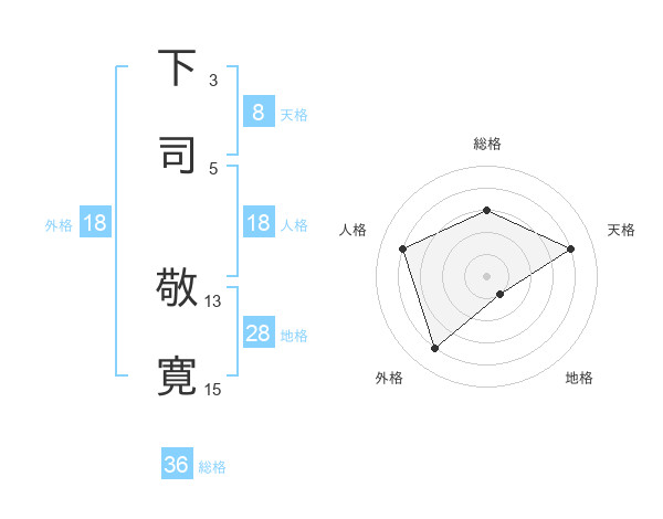 下司 敬寛さんの天格は8画の4点!