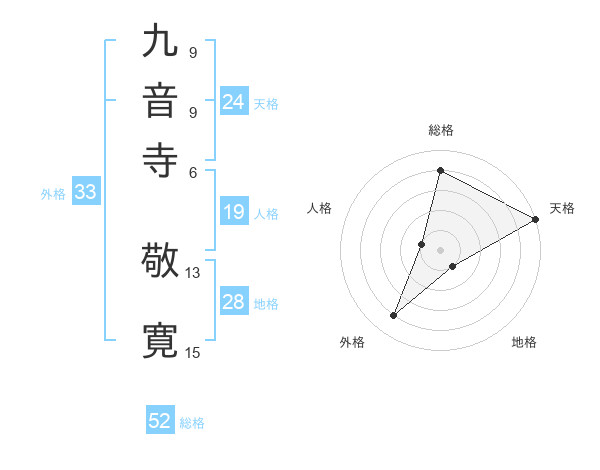 九音寺 敬寛さんの総格は52画の4点!