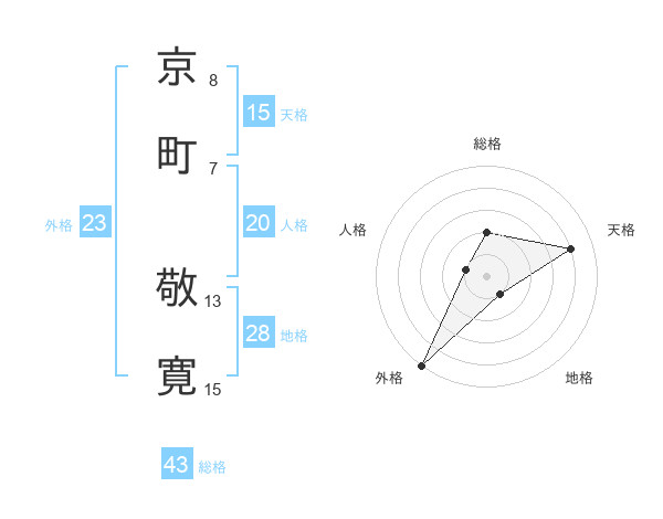 京町 敬寛さんの天格は15画の4点!