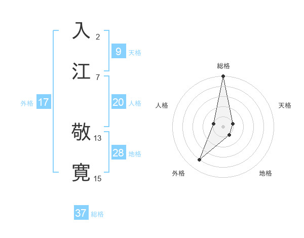 入江 敬寛さんを姓名の画数から五運を鑑定