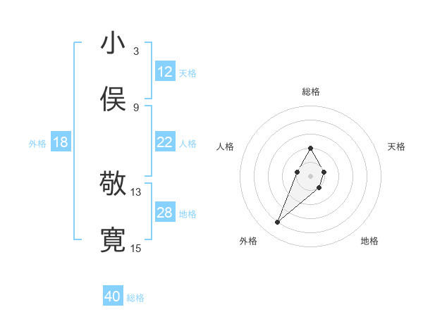 小俣 敬寛さんを姓名の画数から五運を鑑定